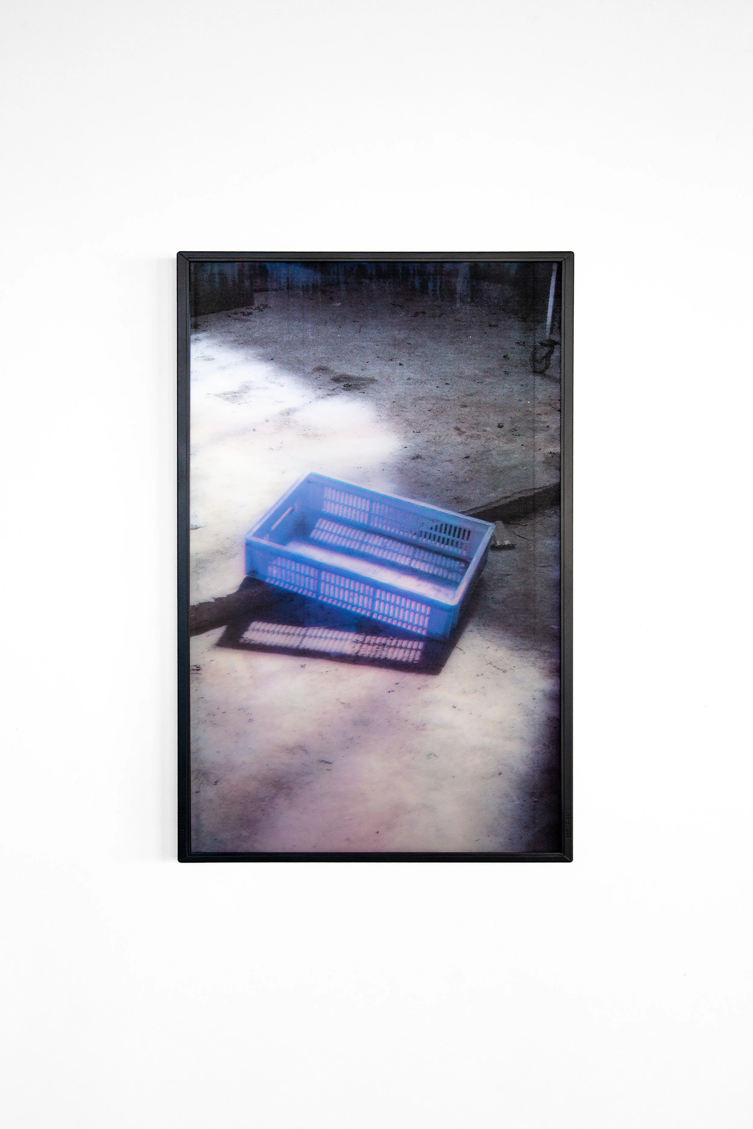 Romina Koopman, 'Blue Crate', 2026. CMYK silkscreen, multiple layers of polarising film in a metal frame.