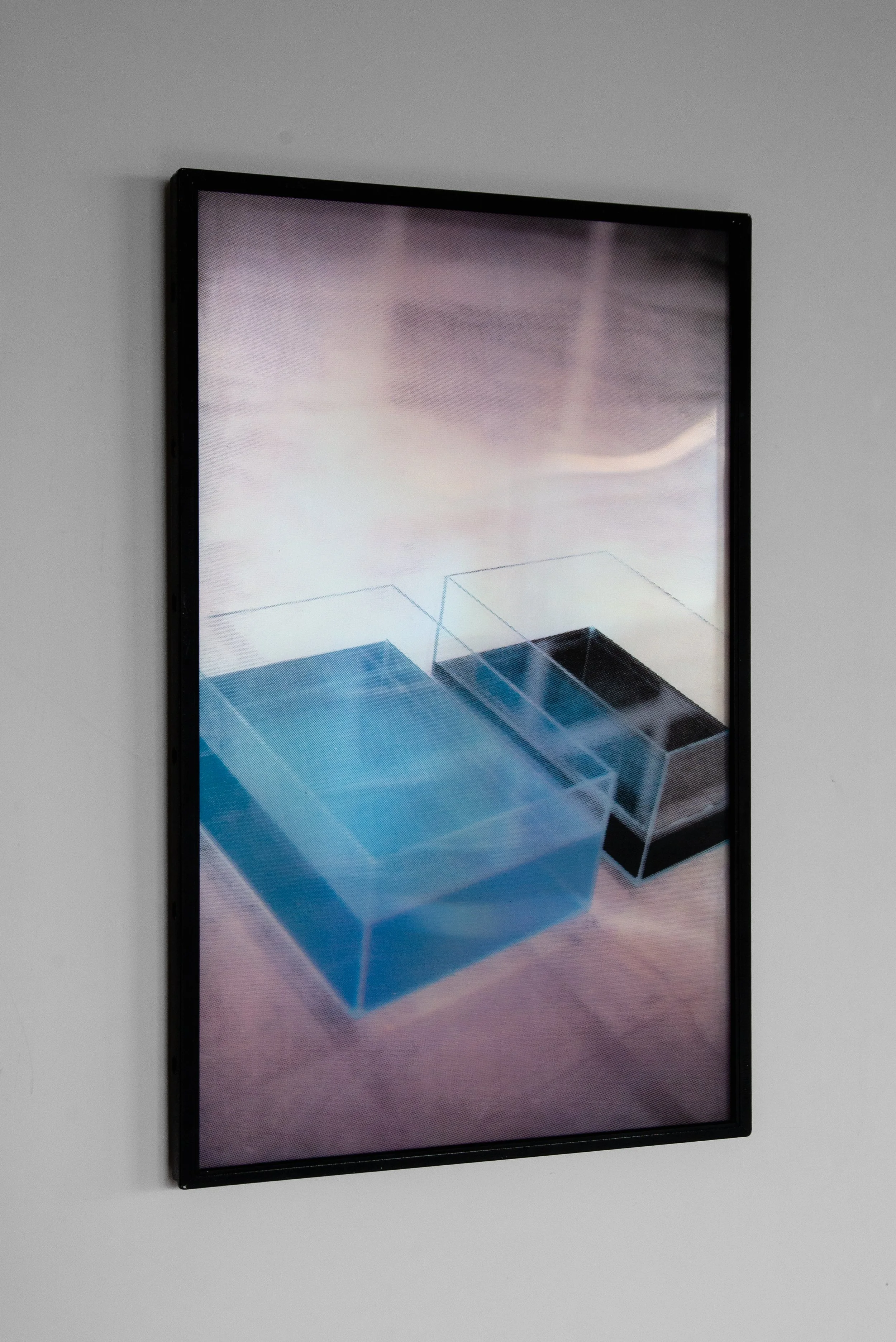 Romina Koopman, Aquariums, 2026. CMYK silkscreen, multiple layers of polarising film in a metal frame with museum glass. 49.5x32 cm