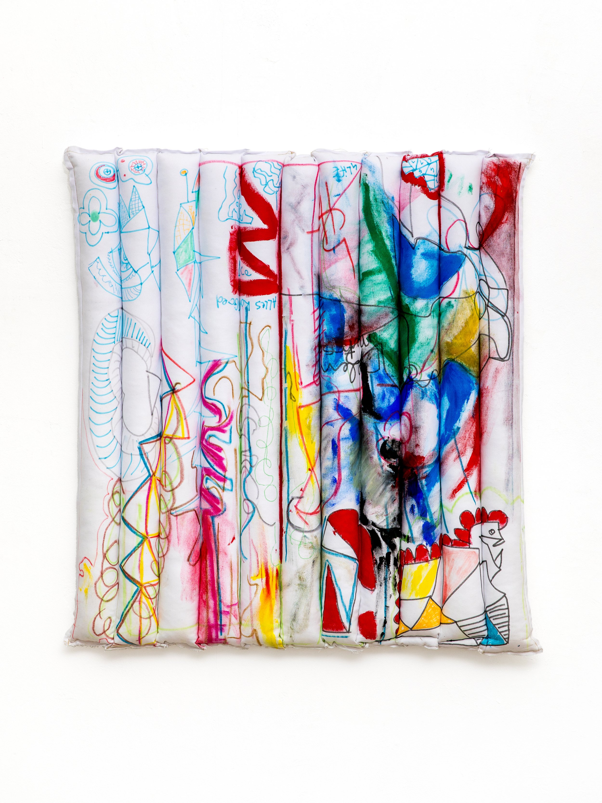 Neil Fortune, Alles Komt Goed, 2021. Textile, polyester fiber, golden paint, acrylic markers, acrylic paint
